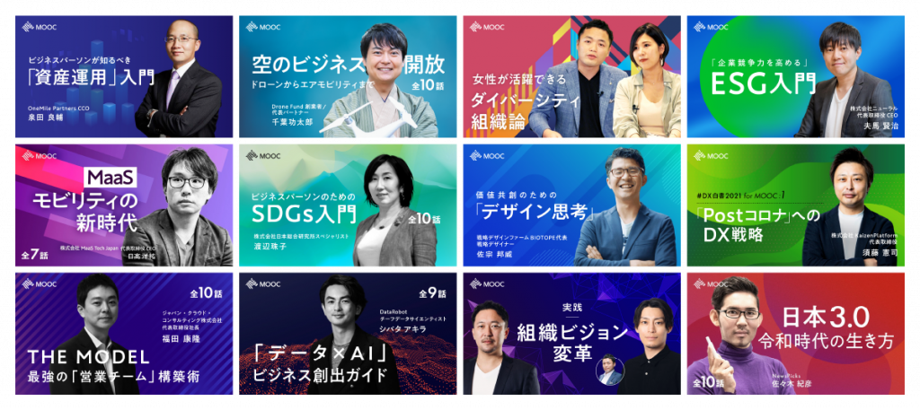 「MOOC Enterprise」は、NewsPicksに出演する事業家や各分野のエキスパートが、実践経験をもとに講義する法人向け動画学習サービスとして2019年にスタート。最先端の知識を動画で手軽に学べるサービスとして、多くの企業から反響をいただいております。