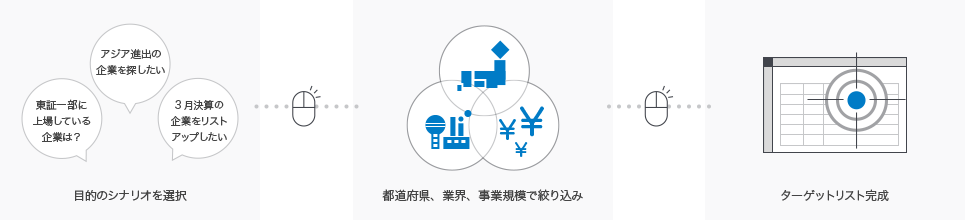 株式会社ユーザベース(本社:東京都渋谷区、代表取締役共同経営者:新野良介・梅田優祐)が提供する、企業・業界情報プラットフォーム「SPEEDA」(http://www.uzabase.com/speeda/)において、シナリオ別に営業候補先の企業リストをたった2クリックで作成する「ターゲットリスト」機能をリリースいたしましたのでお知らせします。